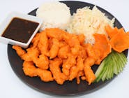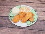 Kurczak chrupiący dla dzieci3 chrupiące kotleciki z piersi kurczaka podawane z surówką i ryżem lub frytkami