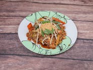 Smażony makaron ryżowy PhoSmażony makaron ryzowy z warzywami i jajkiem oraz dowolnym wybranym składnikiem. Posypany prażoną cebulką (Na zdjęciu Pho z wołowiną).