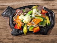 Makaron UdonSmażony makaron pszenny w delikatnym sosie. Z dodatkiem warzyw i jajkiem oraz dowolnym wybranym składnikiem. Posypany prażoną cebulką (Na zdjęciu Udon z warzywami).