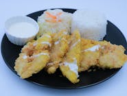 Tajskie paluszki z kurczakapodawane z ryżem i surówką